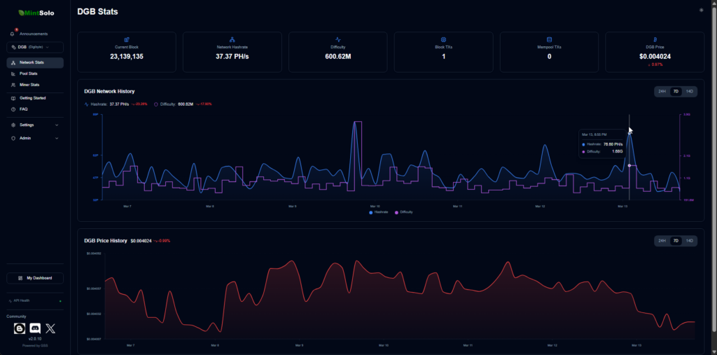 At the beginning of the month, we began rolling out our Digibyte (DGB) solo mining pool. We encountered some issues and had to roll back our DGB updates until we could resolve them and reschedule the implementation. On March 6th, we released our Digibyte pool and hit our first Digibyte block the next morning.