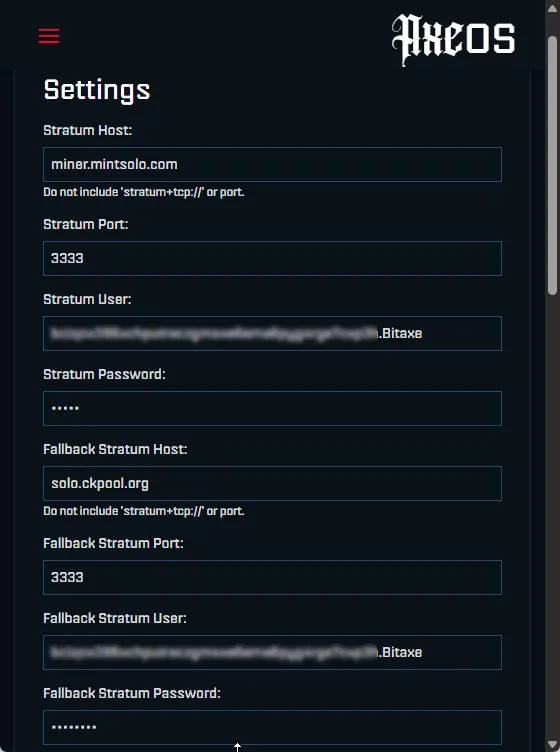 Stratum Host – set this setting to miner.mintsolo.com (do not include stratum+tcp:// or port here)